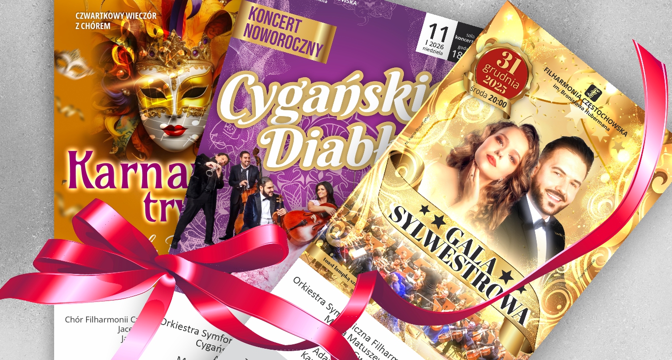 W zbliżającym się okresie świątecznym zapraszamy do zakupu biletów na koncerty i imprezy w Filharmonii Częstochowskiej, które mogą stać się wspaniałym prezentem.